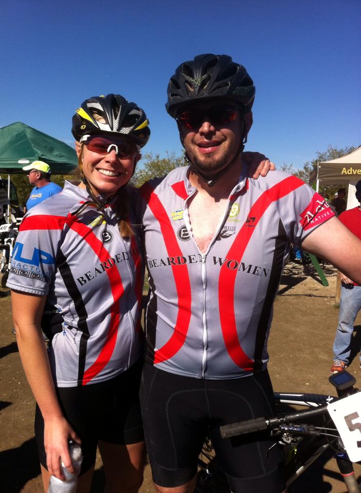 Several years back three friends who enjoyed racing mountain bikes stumbled across an idea late one night before a race after consuming a few beverages of choice. We needed a gimmick to stand out in the crowd of conformist cyclists because we never finished in the top ten to have our names mentioned during the awards presentation. Browsing through old cycling photos one day on the internet, suddenly it appeared right before our eyes; a bearded man wearing a dress standing beside his bicycle. We knew from that moment on we were to become Bearded Women Racing. Two of us have beards and one of us looks good in a dress, so it was fate and not just a coincidence. Our first race as Bearded Women solidified our destiny with the cycling world and we placed fourth in a 12-hour endurance mountain bike race. The rest they say is history yet to be defined but greatness shall be achieved and our legacy shall live on through our children and grandchildren. Long live Bearded Women!